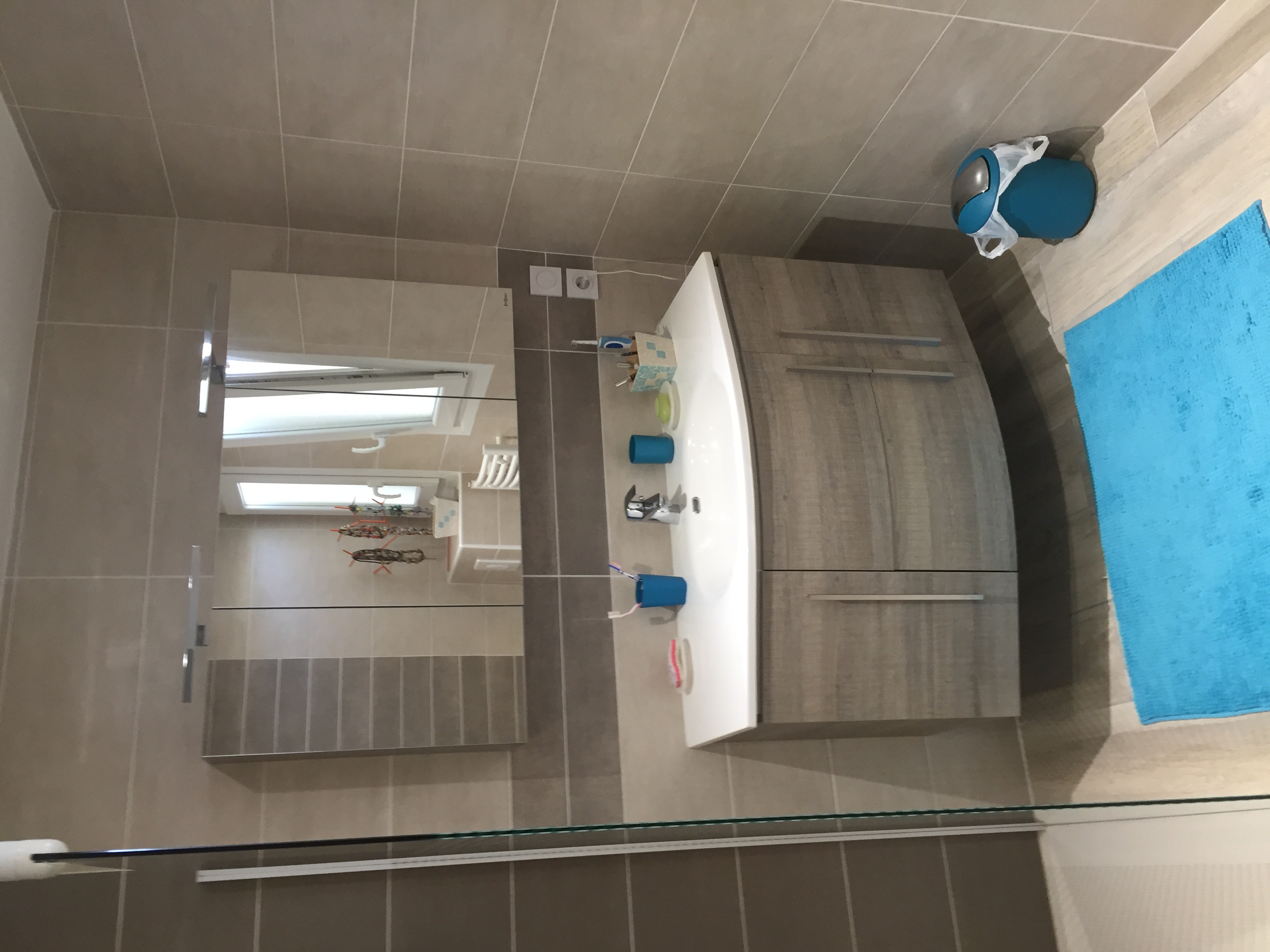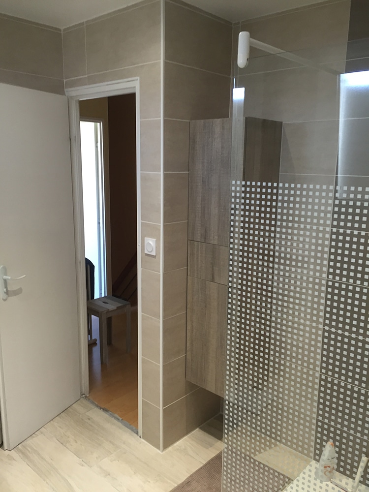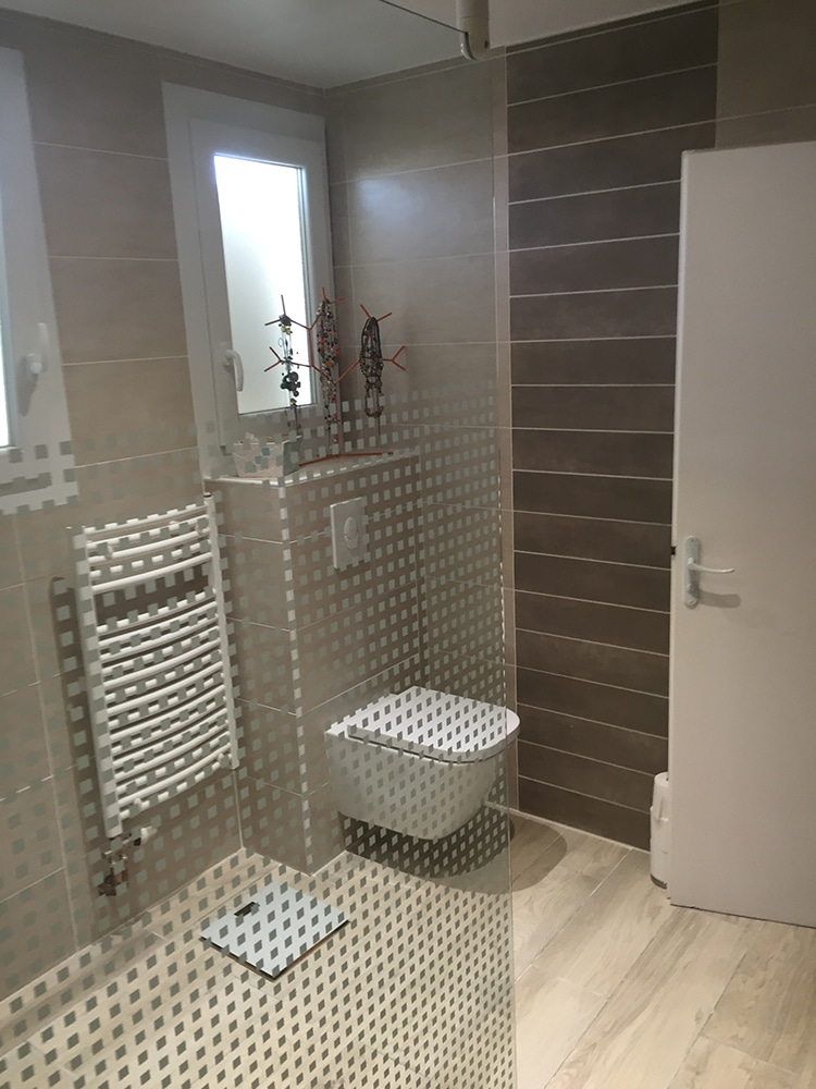 - Modernisation radicale : Remplacement de l’ancienne baignoire par une douche à l’italienne, plus spacieuse et accessible.
